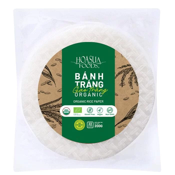 Sản phẩm bánh tráng gạo trắng hữu cơ Hoa Sua Foods được sản xuất từ gạo trắng đạt chứng nhận hữu cơ USDA & EU, đảm bảo an toàn cho sức khỏe, là nguyên liệu cho nhiều món ăn, tiện lợi và dễ cuốn. Bánh tráng gạo trắng hoàn toàn không sử dụng hóa chất, chất bảo quản trong quá trình chế biến.