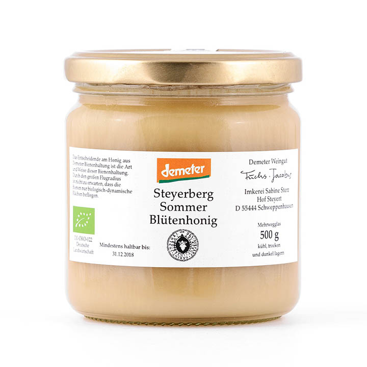 Từ nhà thờ Sabine Sterz (Đức), tại xưởng sản xuất của hãng rượu vang hữu cơ Fuchs Jacobus danh tiếng có 15 tổ ong tự nhiên (chỉ có 15 tổ ong) cho mật ong Demeter. Ong ở đây bay trên toàn bộ diện tích canh tác nho sinh học bền vững (Biodynamic Demeter) tại Schweppenhäuser Steyerberg với nhiều loài hoa khác nhau.