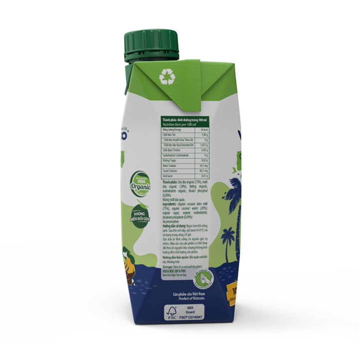 Sữa dừa Vietcoco Organic có thể sử dụng để thay thế nguồn sữa bò hàng ngày. Sản phẩm không chỉ giàu chất béo bão hòa mà còn chứa lượng axit béo chuỗi trung bình giúp tăng cường quá trình trao đổi chất. Sữa dừa Vietcoco được sản xuất bằng công nghệ UHT với hương vị thơm ngon, đảm bảo chất lượng và tốt cho sức khỏe.