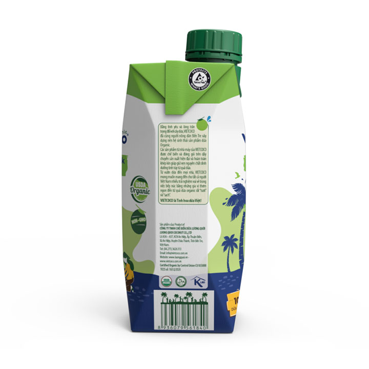 Trong dừa chứa nhiều chất có lợi cho cơ thể, giúp bù nước khi cơ thể mất nước qua tiết mồ hôi hay cần năng lượng cho quá trình lao động. Sữa dừa Vietcoco được đóng hộp giấy 500ml với 6 lớp bảo vệ và nắp vặn cấu trúc Dream CapTM tiện lợi, có thể tái chế, dễ dàng mang theo sử dụng.